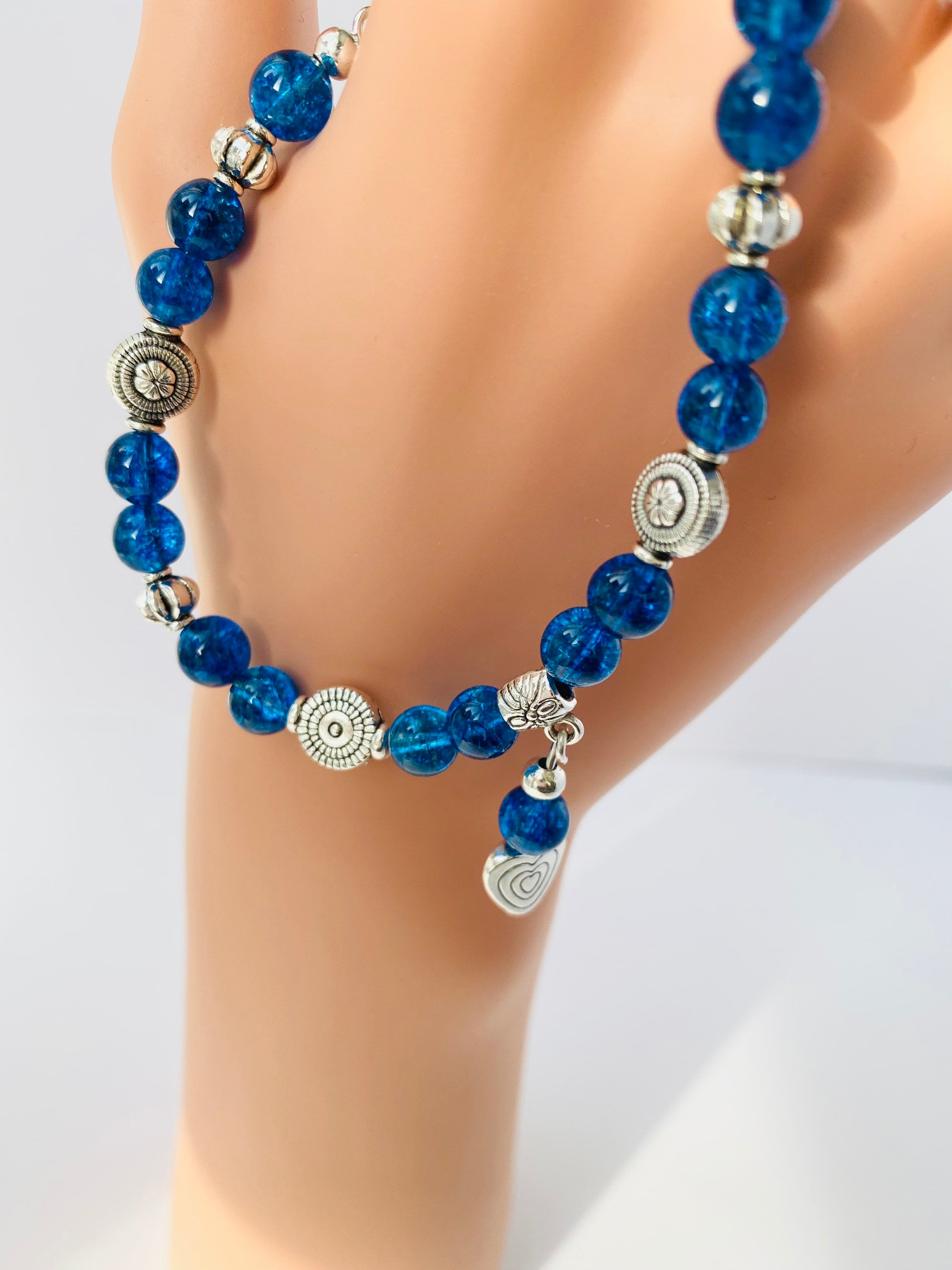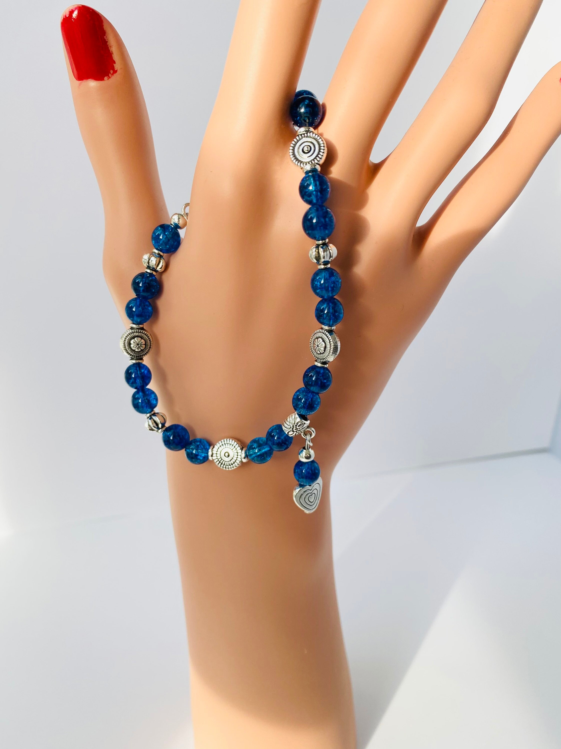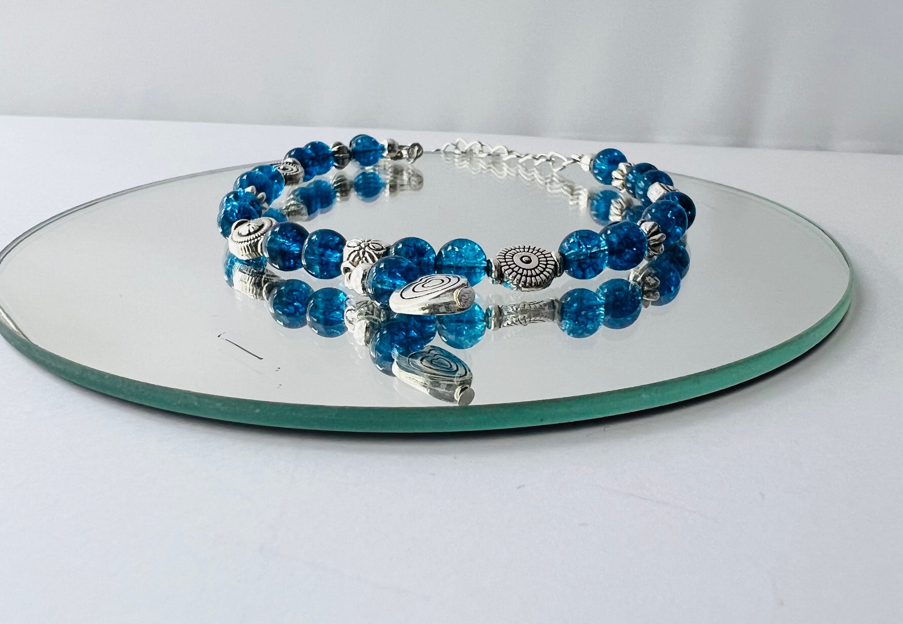 Also made with silver plated beads and Tibetan heart Charm.
