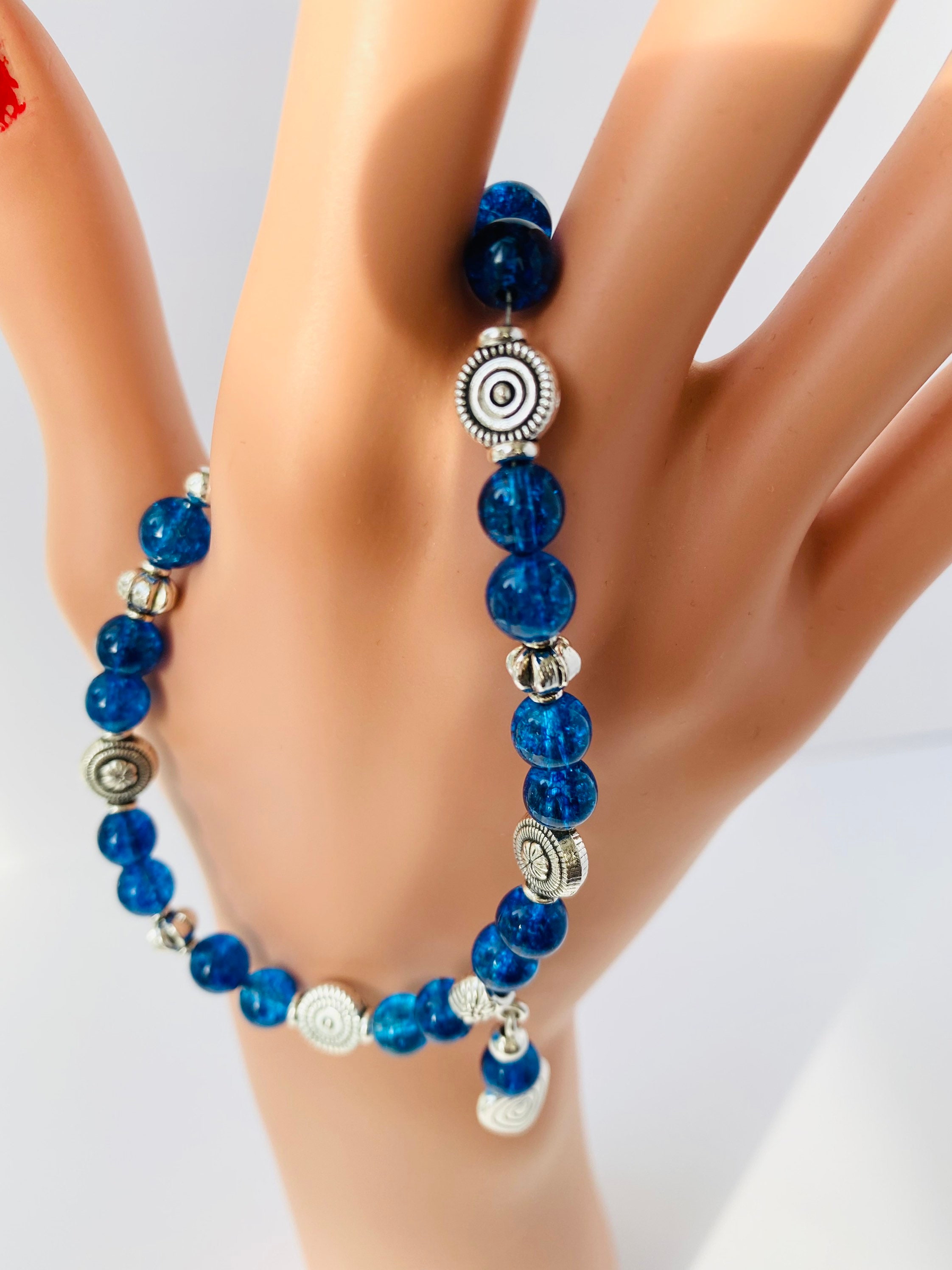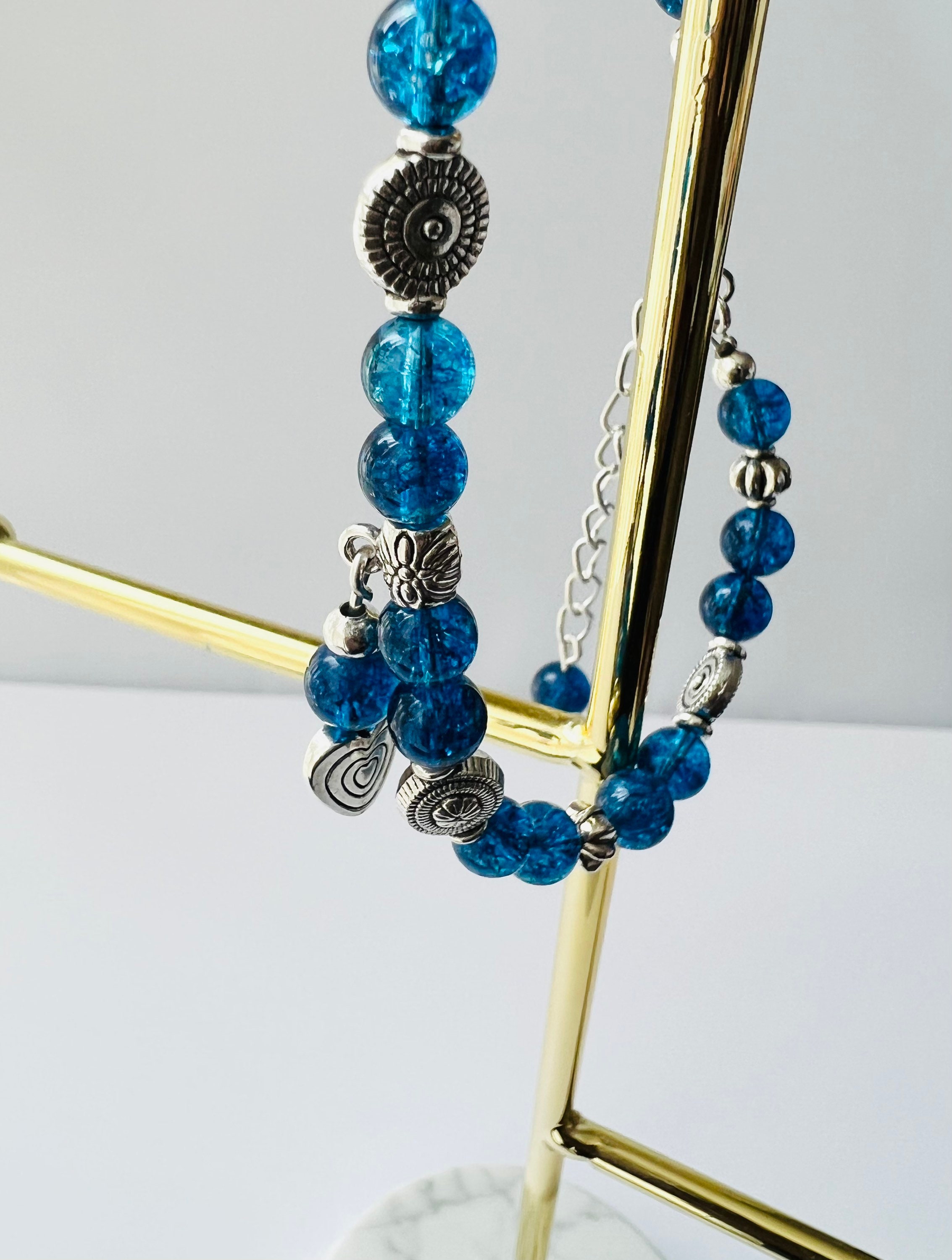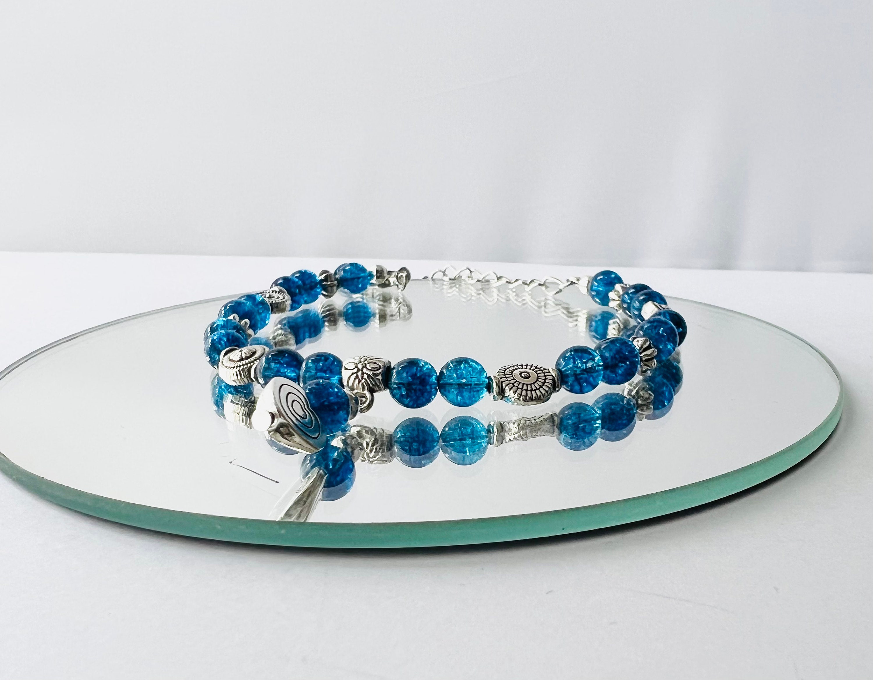 Also made with silver plated beads and Tibetan heart Charm.