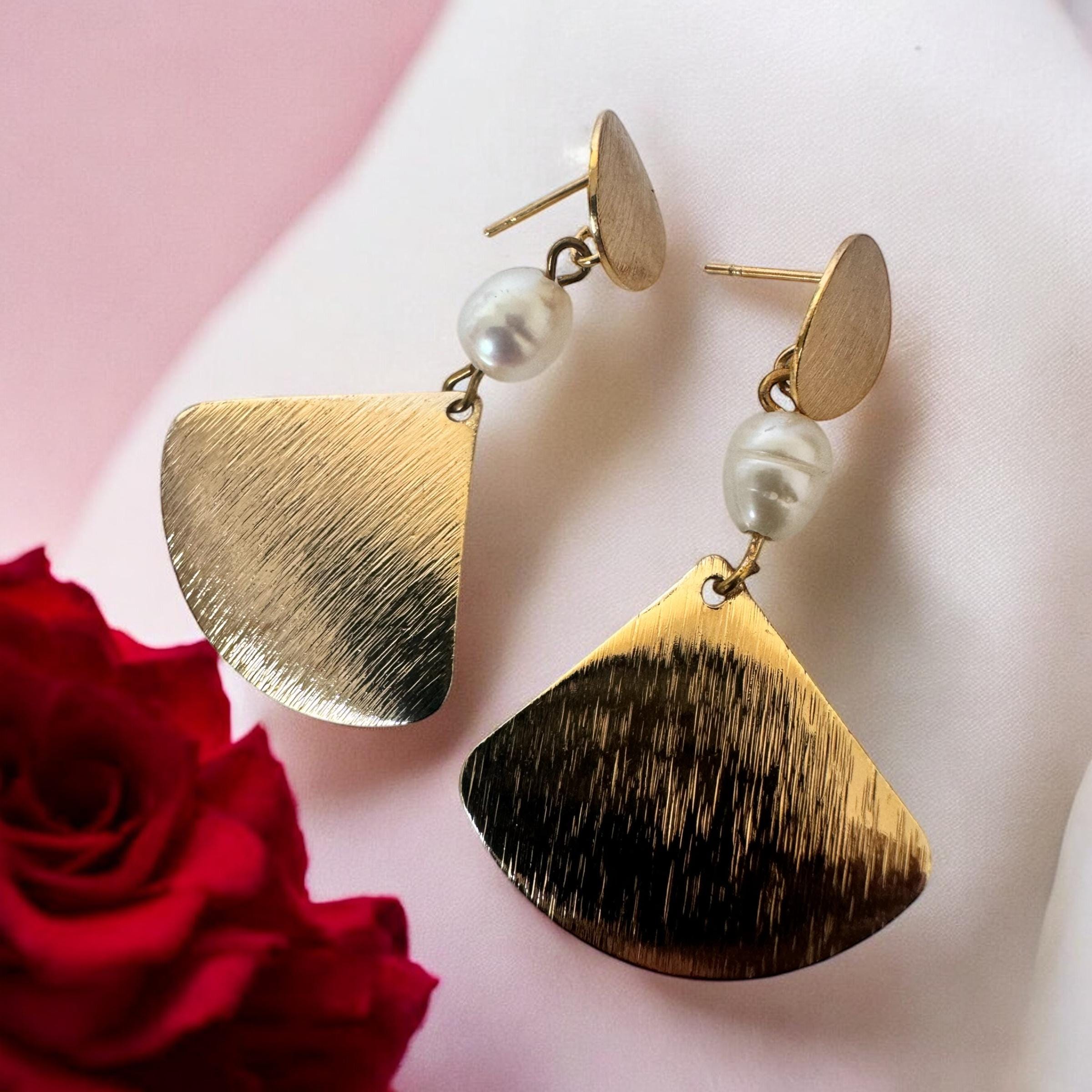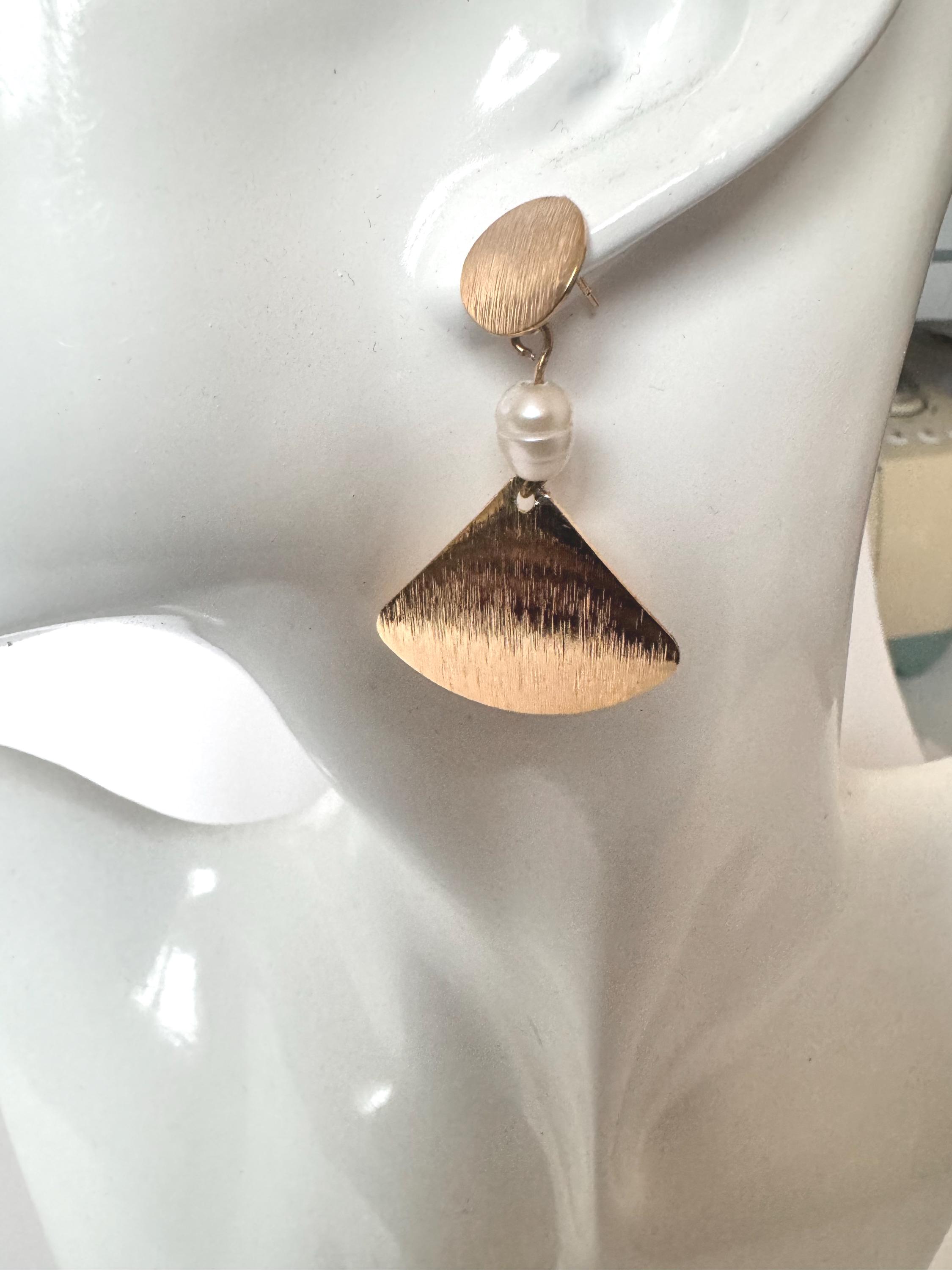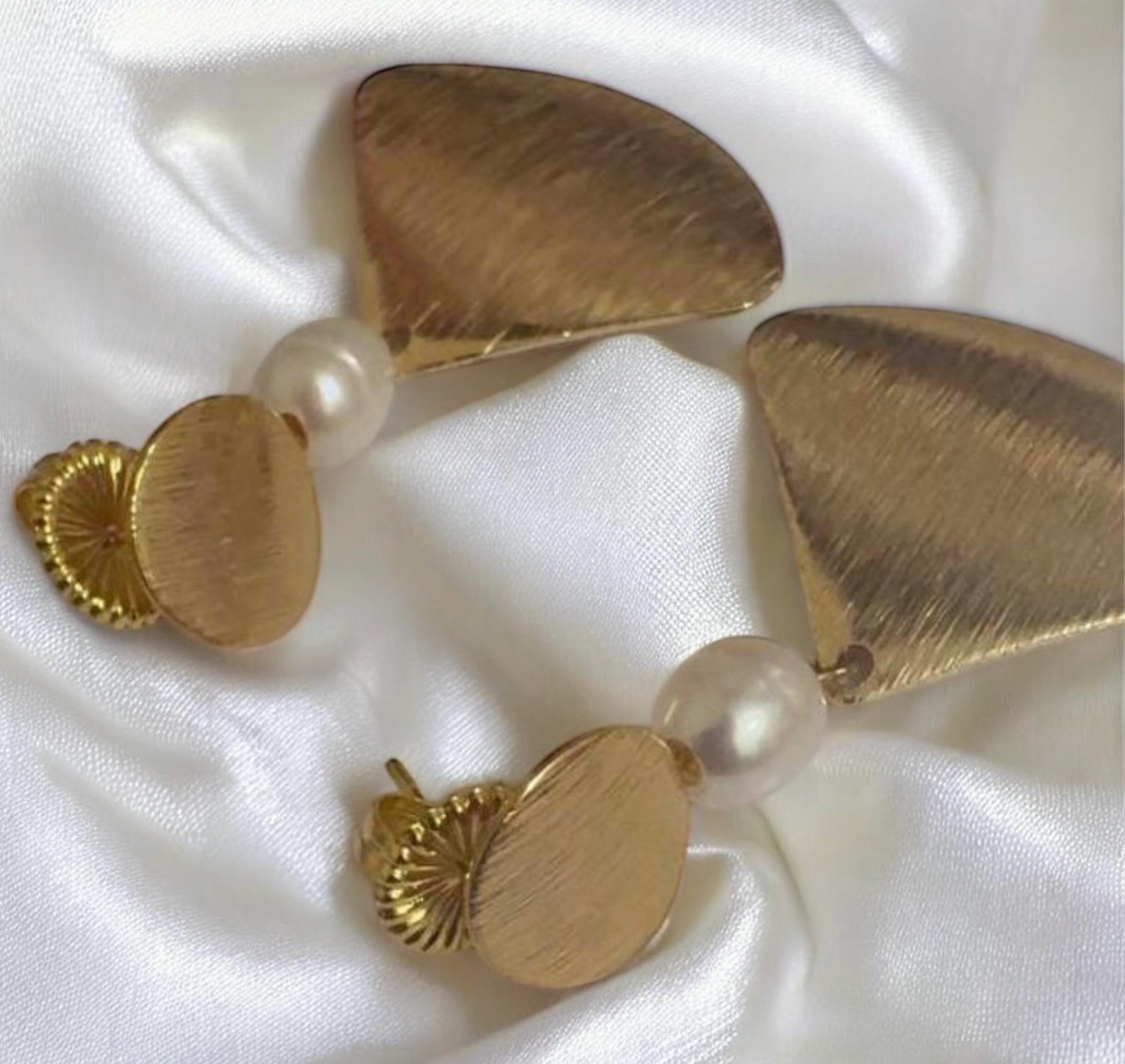 Freshwater Pearl Gold Dangle Earrings