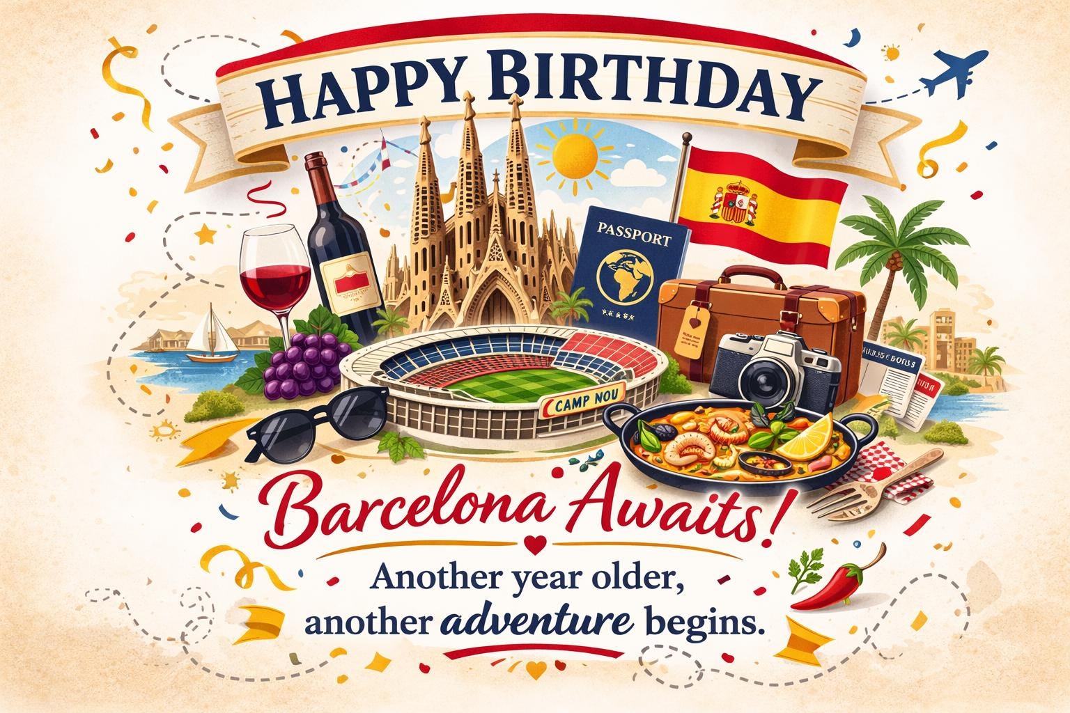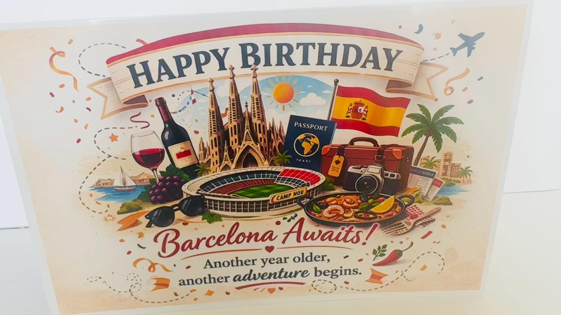 NEW** Barcelona Themed Birthday Card (Glossy Cardstock)