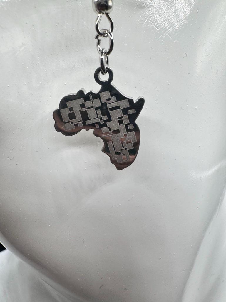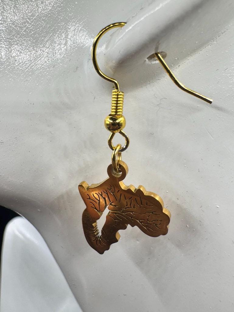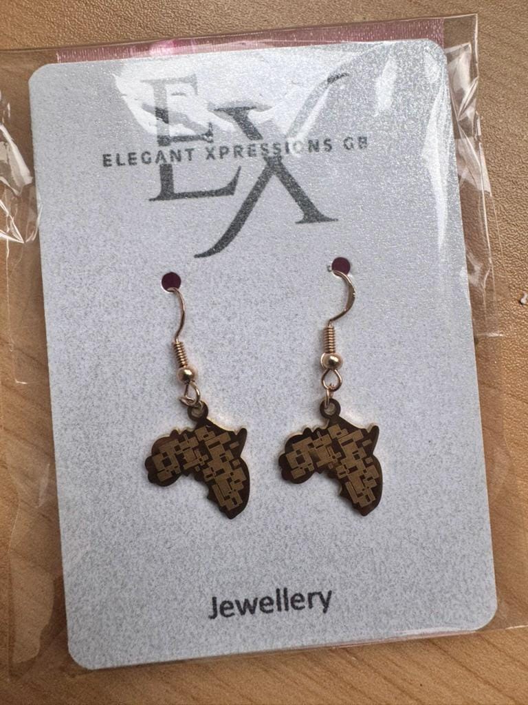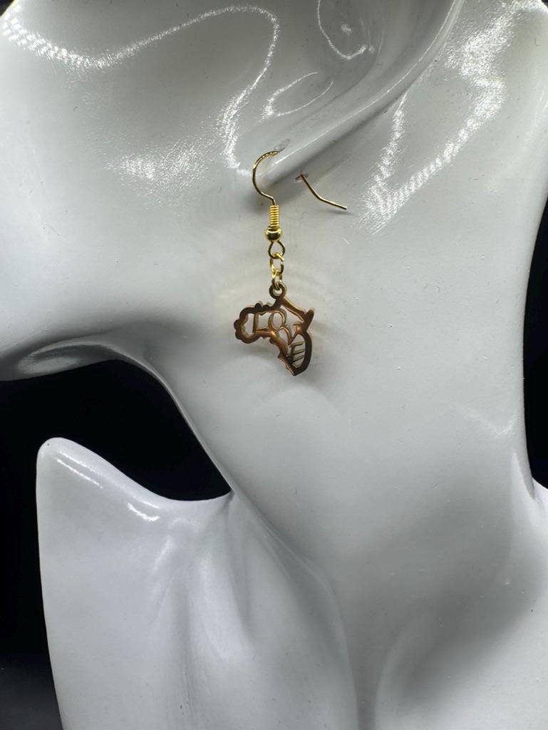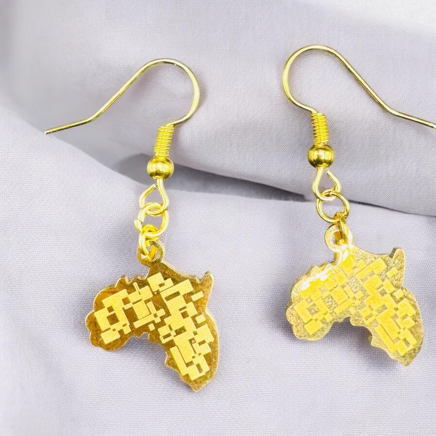 These elegant earrings are crafted with care, featuring a detailed silhouette of the African continent in gold. Lightweight and stylish, they’re perfect for everyday wear or special occasions, making a subtle yet meaningful statement about heritage, travel, and culture.