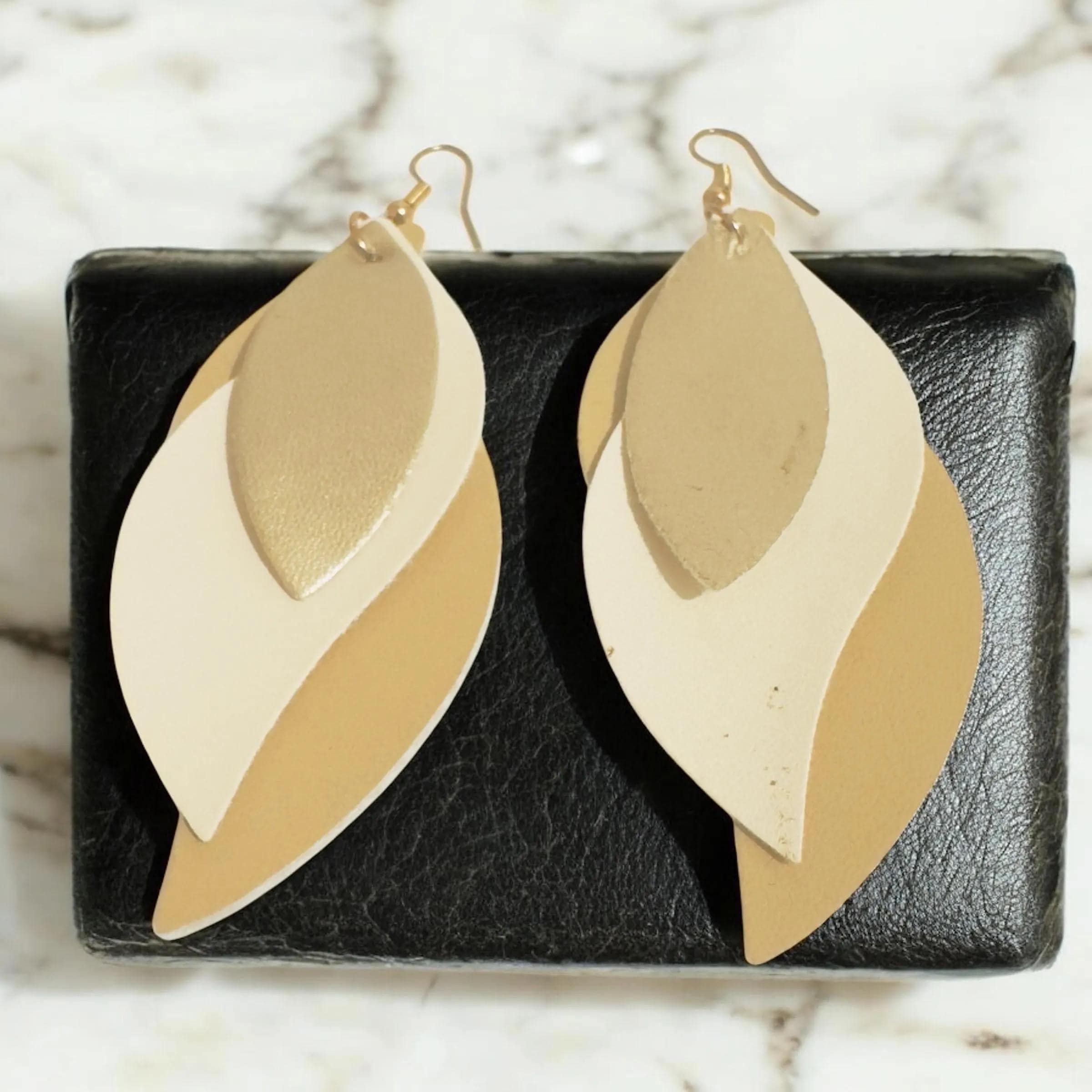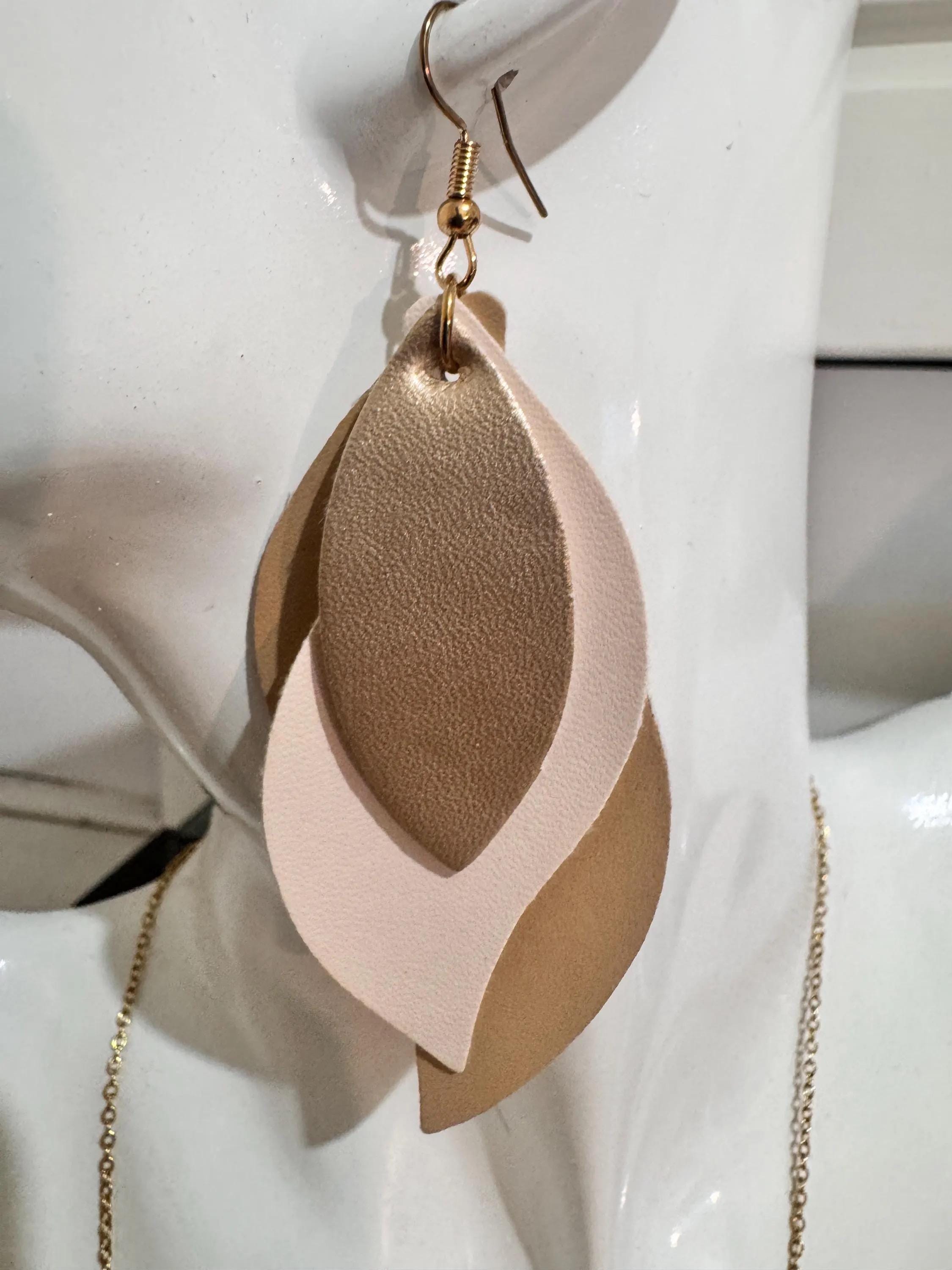 Bring a touch of nature-inspired elegance to your look with these handcrafted layered leaf earrings. Made from high-quality faux leather, these earrings are lightweight, durable, and perfect for all-day wear. Each pair is carefully designed with layered detailing to create depth and movement, making them a standout accessory for any outfit.