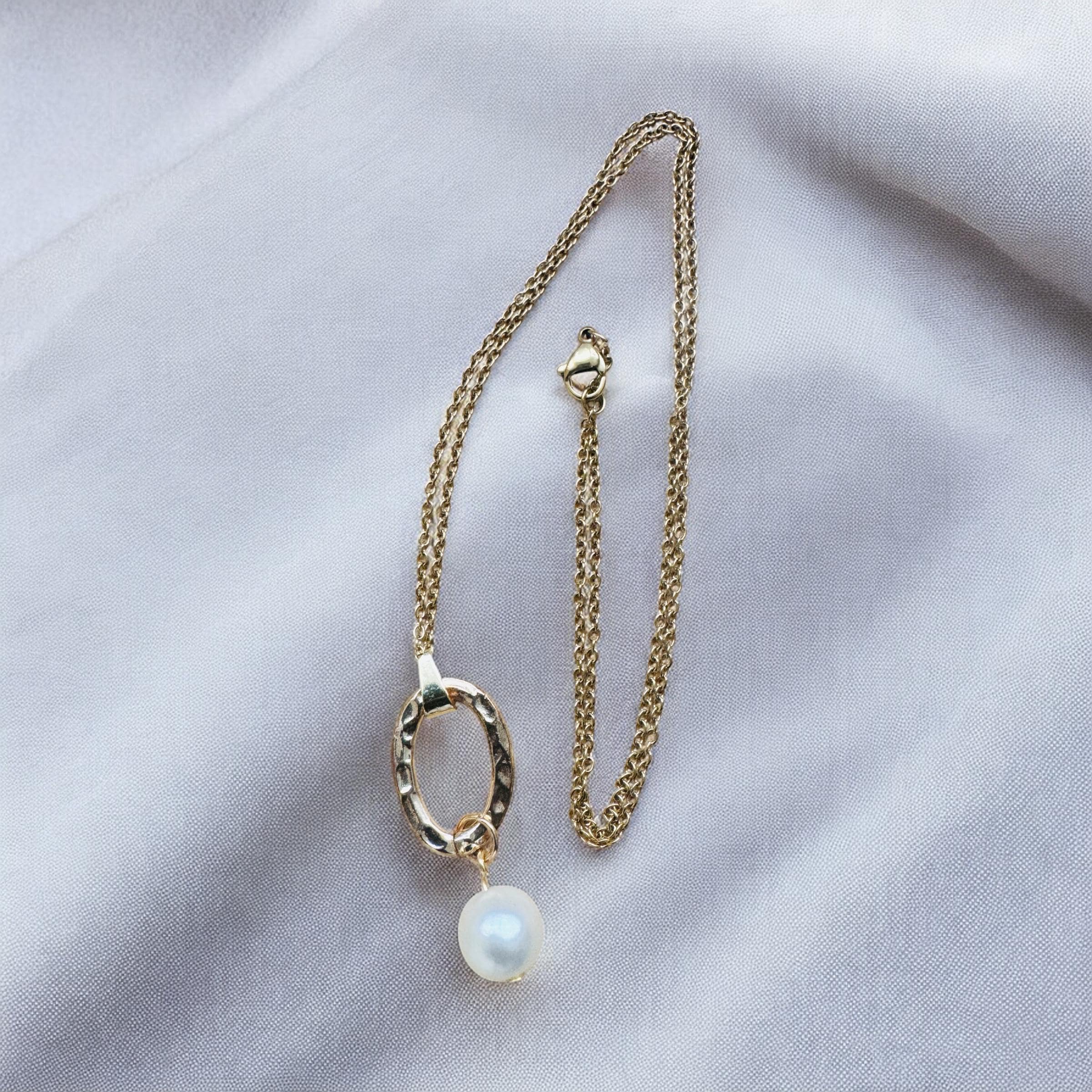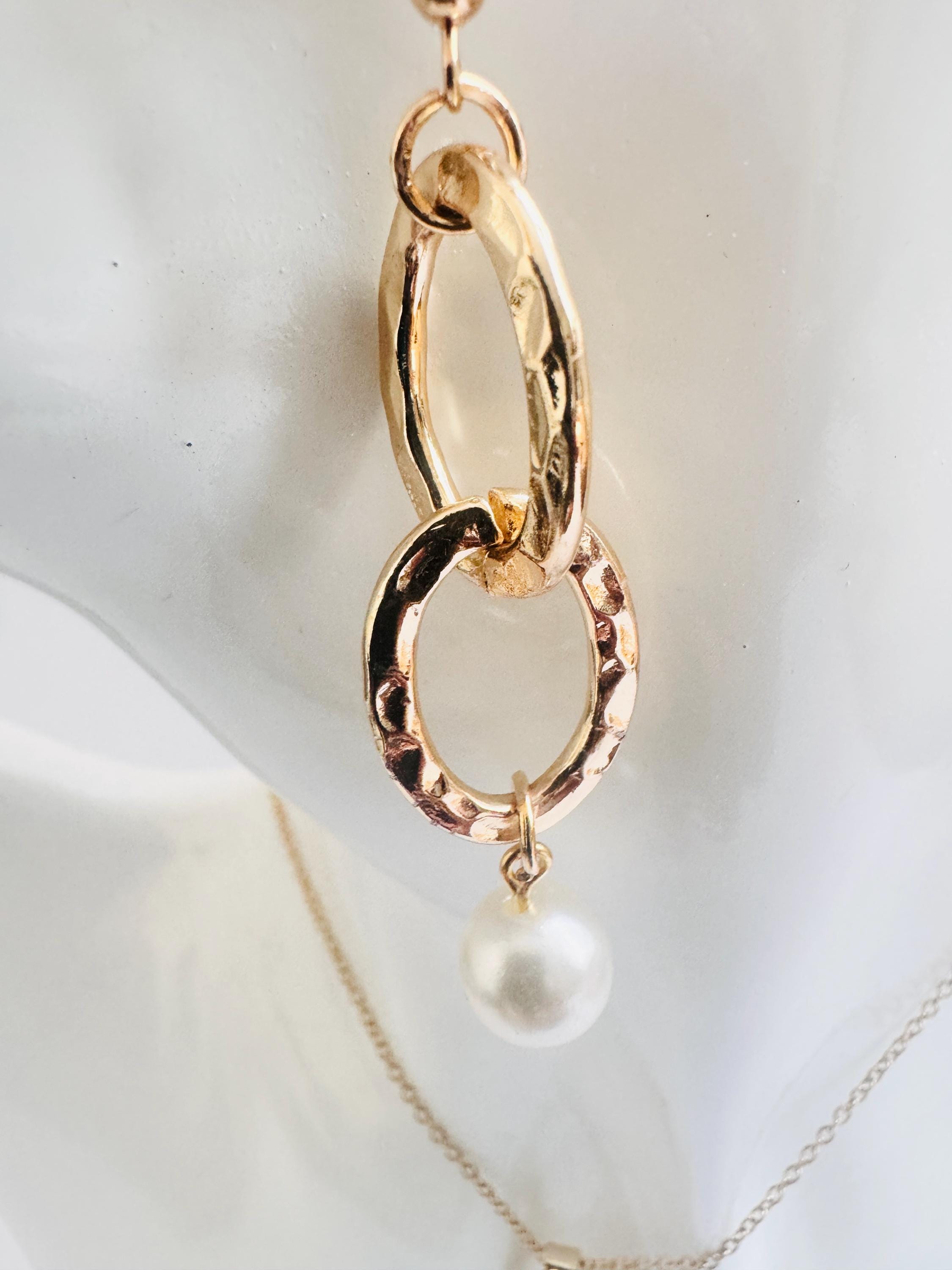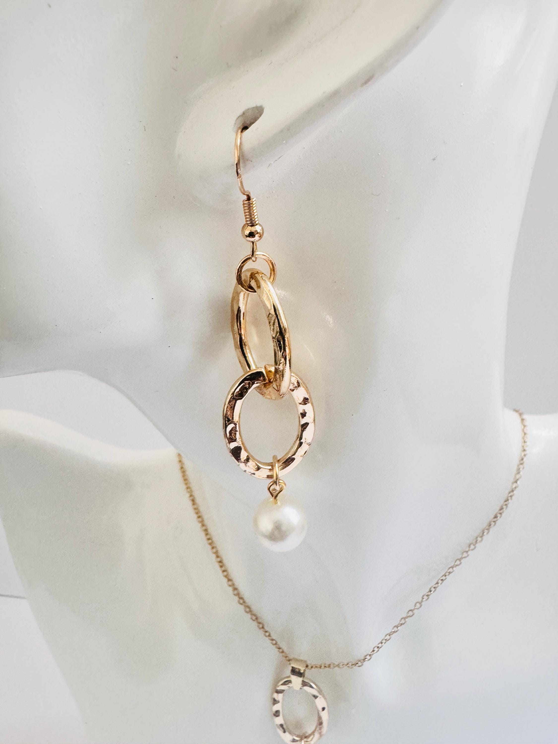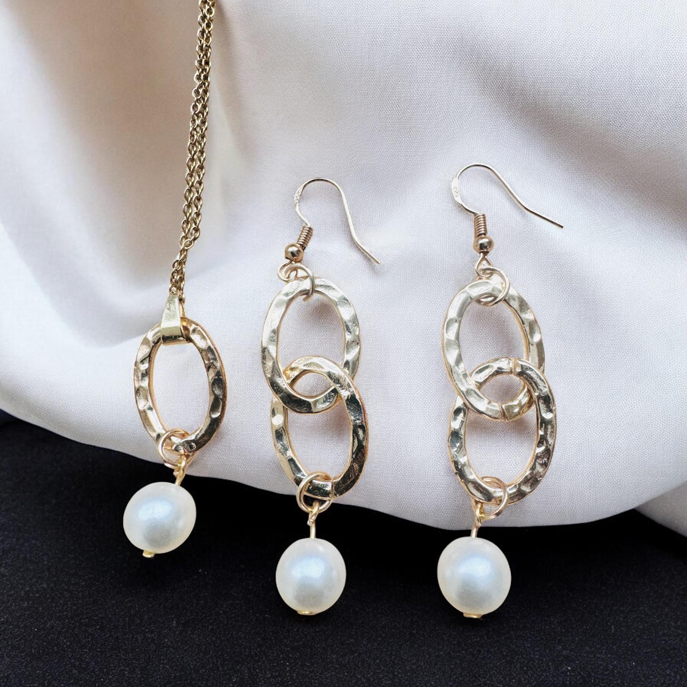 Gold Chain Link Pearl Necklace Set
